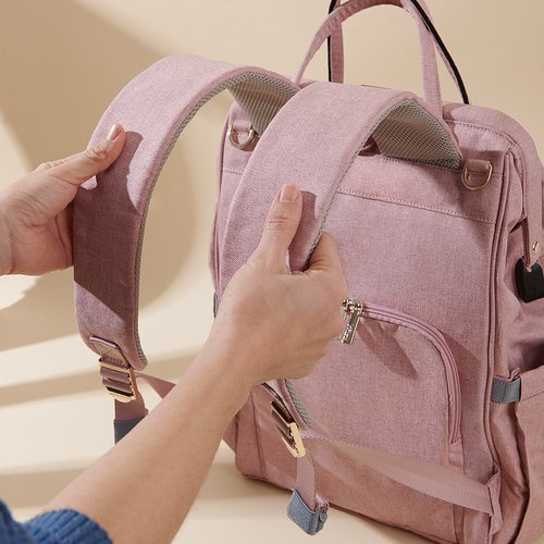 With a generous changing pad and USB port, this backpack combines fashion,